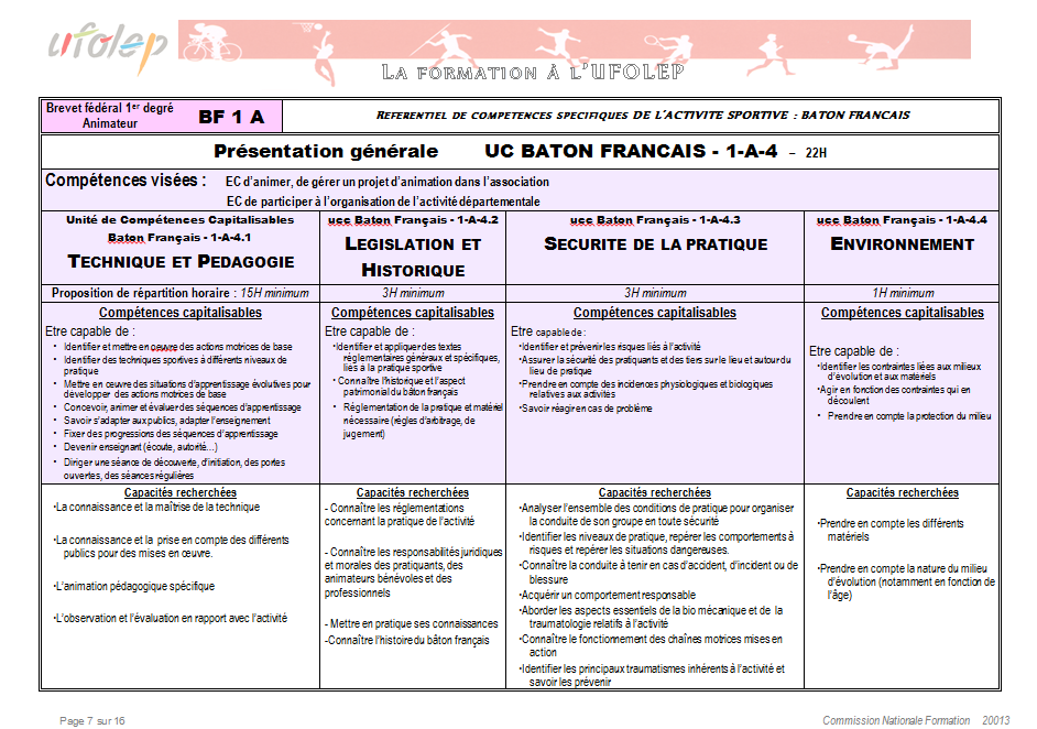 Rappel sur l’objectif du Brevet Fédéral de Bâton Français (BF1-1 Bâton Français).
